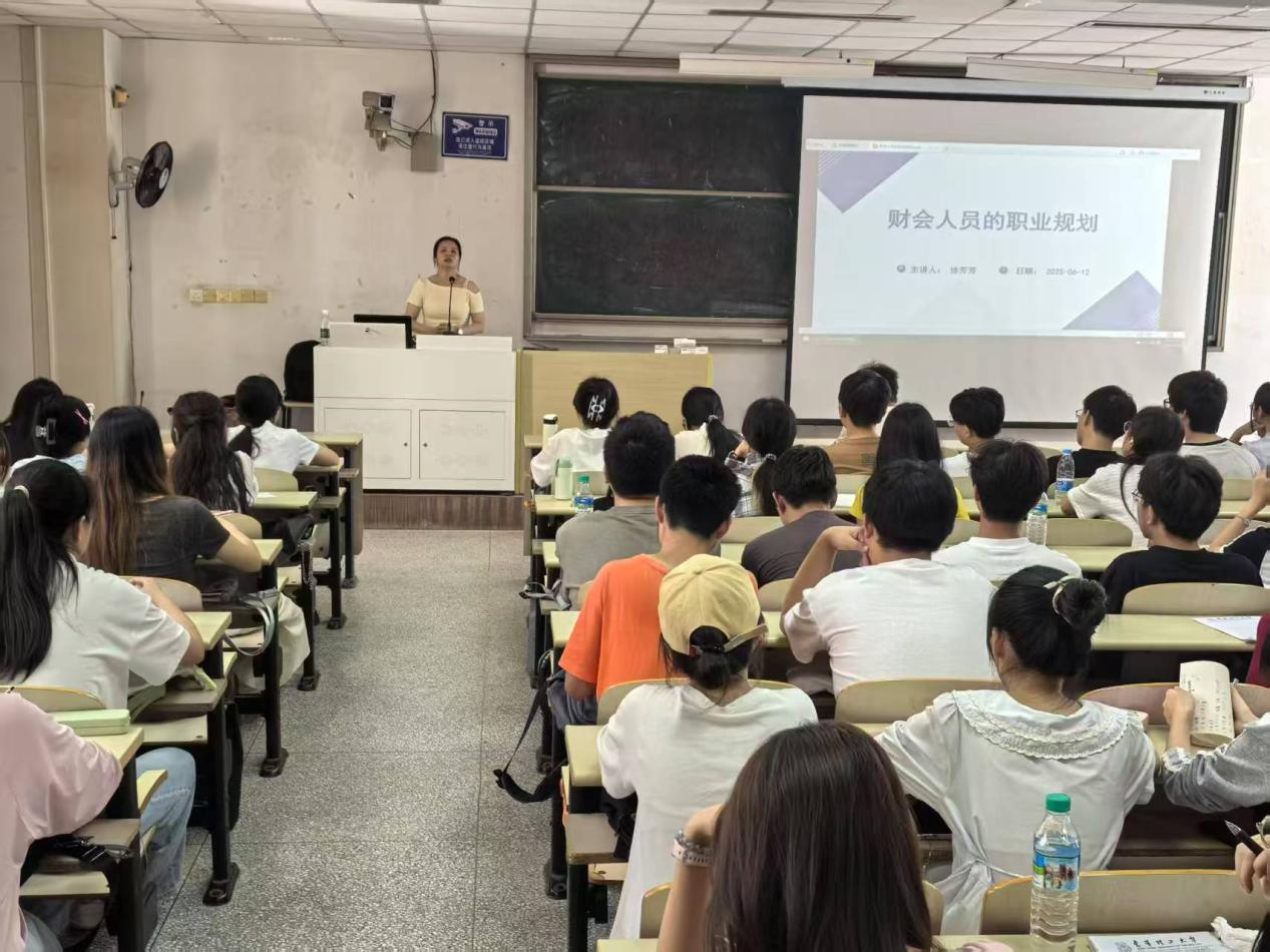 江西赣抚建材资源开发有限公司财务经理徐芳芳为学生做了《财会人员的职业规划》专题讲座。