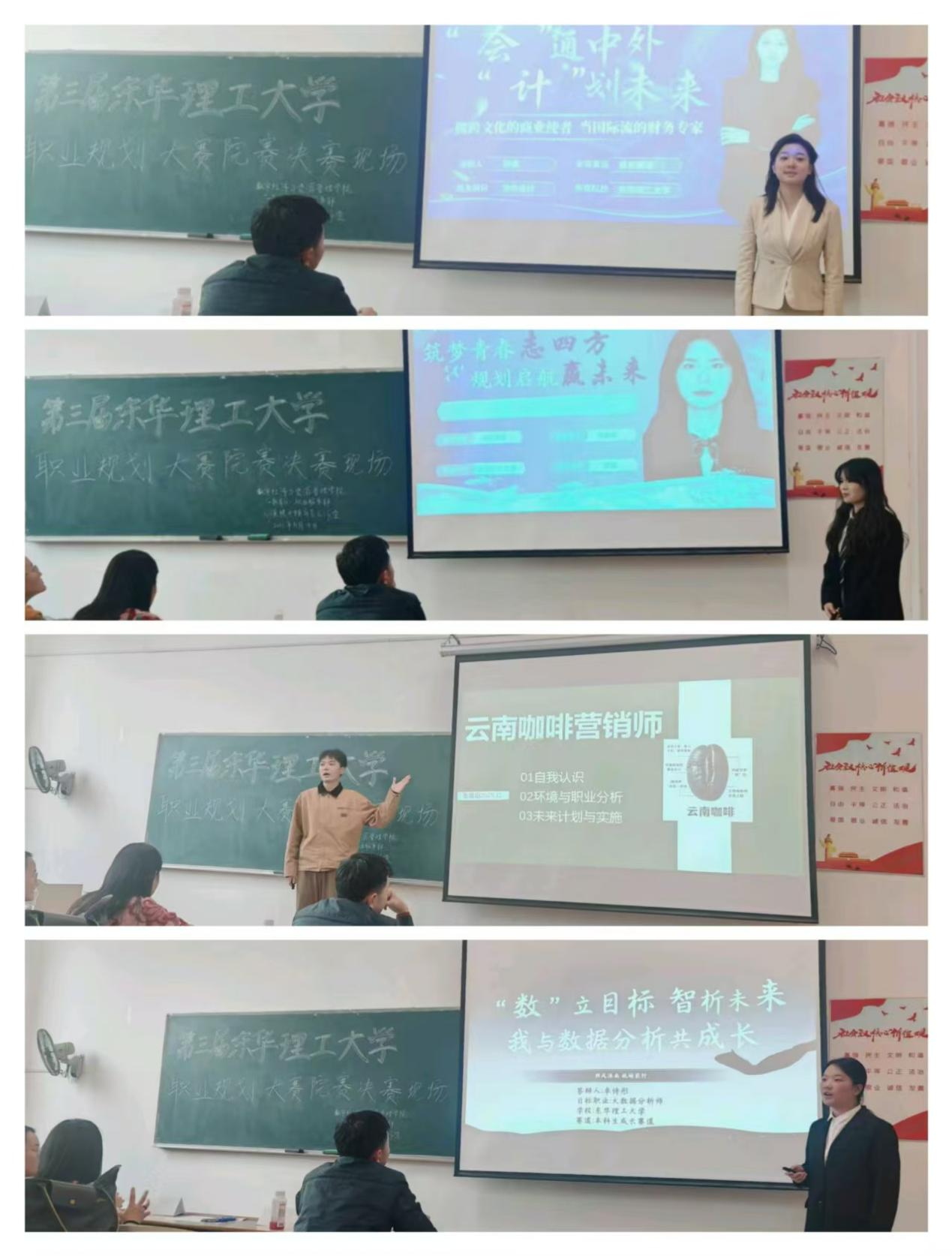 经过激烈的角逐,最终研究生就业赛道郑圣荃、姚素琴,本科生就业赛道李淼、陈文娟,本科生成长赛道李宇轩、朱汭东晋级校赛。