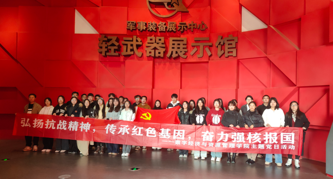为弘扬伟大抗战精神、厚植红色基因,进一步激发学生党员强核报国的责任担当,12月19日,数字经济与资源管理学院以“弘扬抗战精神 传承红色基因 奋力强核报国”为主题,组织第一研究生党支部和市场营销专业、财务管理专业学生党支部的全体党员,赴南昌军事主题公园及轻武器展示馆开展沉浸式主题党日活动,引导党员在红色教育实景中汲取奋进力量,在新时代征程中践行使命担当。
