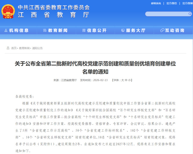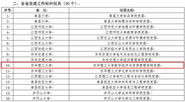 近日,中共江西省委教育工委公布全省第二批新时代高校党建示范创建和质量创优培育创建单位名单,东华理工大学数字经济与资源管理学院党委成功入选“全省党建工作标杆院系”培育创建单位,学院实现首次申报即入选,党建工作在省级项目上取得历史性突破。