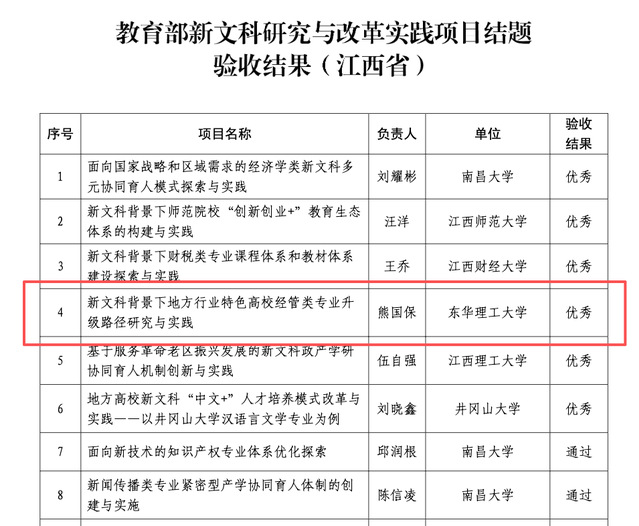 | 喜讯:我院熊国保教授主持的新文科研究与改革实践项目顺利通过教育部验收并获评优秀 |