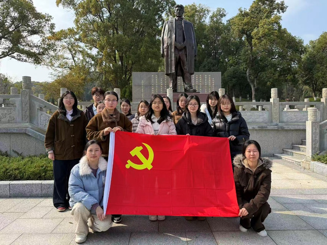 为深入推进树立和践行正确政绩观学习教育动员部署,将学习教育与“三会一课”、主题党日活动深度融合,引导学生党员传承红色基因、筑牢思想根基,2026年3月14日下午,数字经济与资源管理学院统计学学生党支部、市场营销学生党支部、国际经济与贸易专业学生党支部共19名党员前往南昌方志敏烈士纪念馆,开展“追寻烈士足迹,践行正确政绩观”主题党日活动。 抵达后,全体党员首先前往方志敏烈士之墓,整齐列队、肃立默哀,随后向烈士墓深深鞠躬,表达对革命先烈的深切缅怀与崇高敬意。鞠躬致敬后,大家集中观看重塑方志敏铜像事记,通过文字资料,详细了解铜像重塑的背景与意义,真切感受方志敏烈士精神的强大力量,深刻感悟他“清贫、洁白朴素”的崇高气节和“为了可爱的中国”的赤诚信仰,对“民心是最大的政绩”有了更深刻的理解。 随后,支部组织党员在烈士铜像旁集体诵读《清贫》经典段落,大家驻足沉思,结合观看铜像事记的体会,深刻领会烈士“矜持不苟,舍己为公”的高尚品格,明确了青年学生党员践行正确政绩观的核心——立足学业、脚踏实地,关心同学、服务群众,传承红色基因、发挥先锋模范作用。