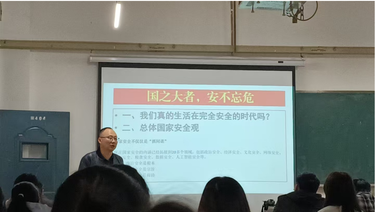 活动还向学生系统介绍了国家安全涵盖的二十个重点领域:政治安全、国土安全、军事安全、经济安全、文化安全、社会安全、科技安全、网络安全、生态安全、资源安全、核安全、海外利益安全、生物安全、太空安全、极地安全、深海安全、数据安全、粮食安全、人工智能安全、金融安全。通过讲解,同学们深刻认识到国家安全早已超越“抓间谍”的传统认知,而是涉及国计民生的方方面面,进一步强化了“安不忘危、存不忘亡”的底线思维。 二、普法教育与保密宣传并重,筑牢法治防线学院组织各专业学生集中学习了《宪法》《国家安全法》《网络安全法》《反间谍法》《数据安全法》《生物安全法》等重点法律法规。辅导员结合大学生日常生活学习,重点讲解了网络社交、数据使用、学术交流中的法律边界,明确公民在维护国家安全中的权利与义务,引导学生遵法、学法、守法、用法。